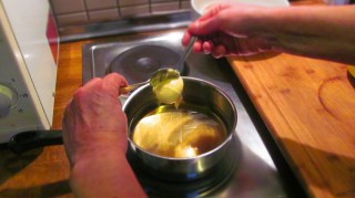 - С помощта на две чаени лъжички пускам малко количество тесто в мазнината или загребвам с едната лъжичка, а с другата избутвам тестото. Тестото пада на топка в горещата мазнина.