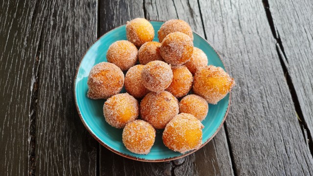 - Готовите бухтички изваждам с решетъчна лъжица от горещата мазнина и овалвам в канелената захар.