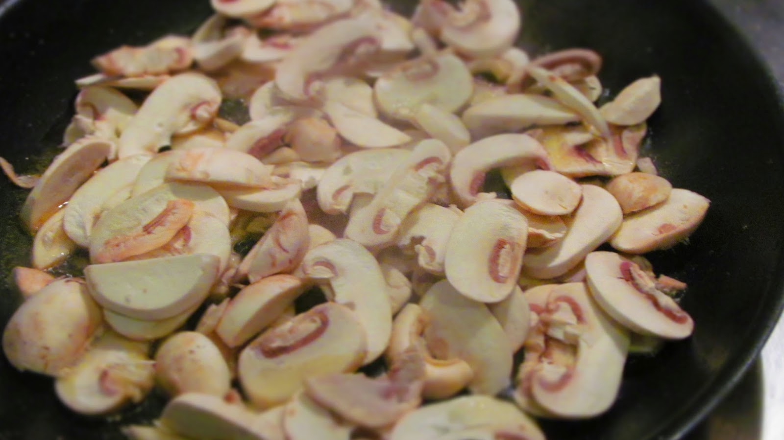 - В мазнината, в която пържих месото слагам измитите, почистени от пънчетата и нарязани на тънки филийки гъби. Намалявам котлона с още половин степен /втора степен от 3 възможни/ и пържа гъбите, докато поомекнат.