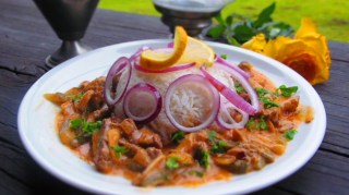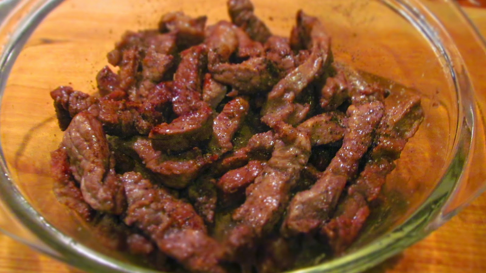 - Важното за това ястие е месото да се нареже на тънки лентички. Аз нарязвам филето първо на филийки с дебелина 1 см. и после всяка филийки нарязвам на две или три тънки лентички.