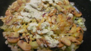 - Поръсвам зеленчуците с брашното и разбърквам.