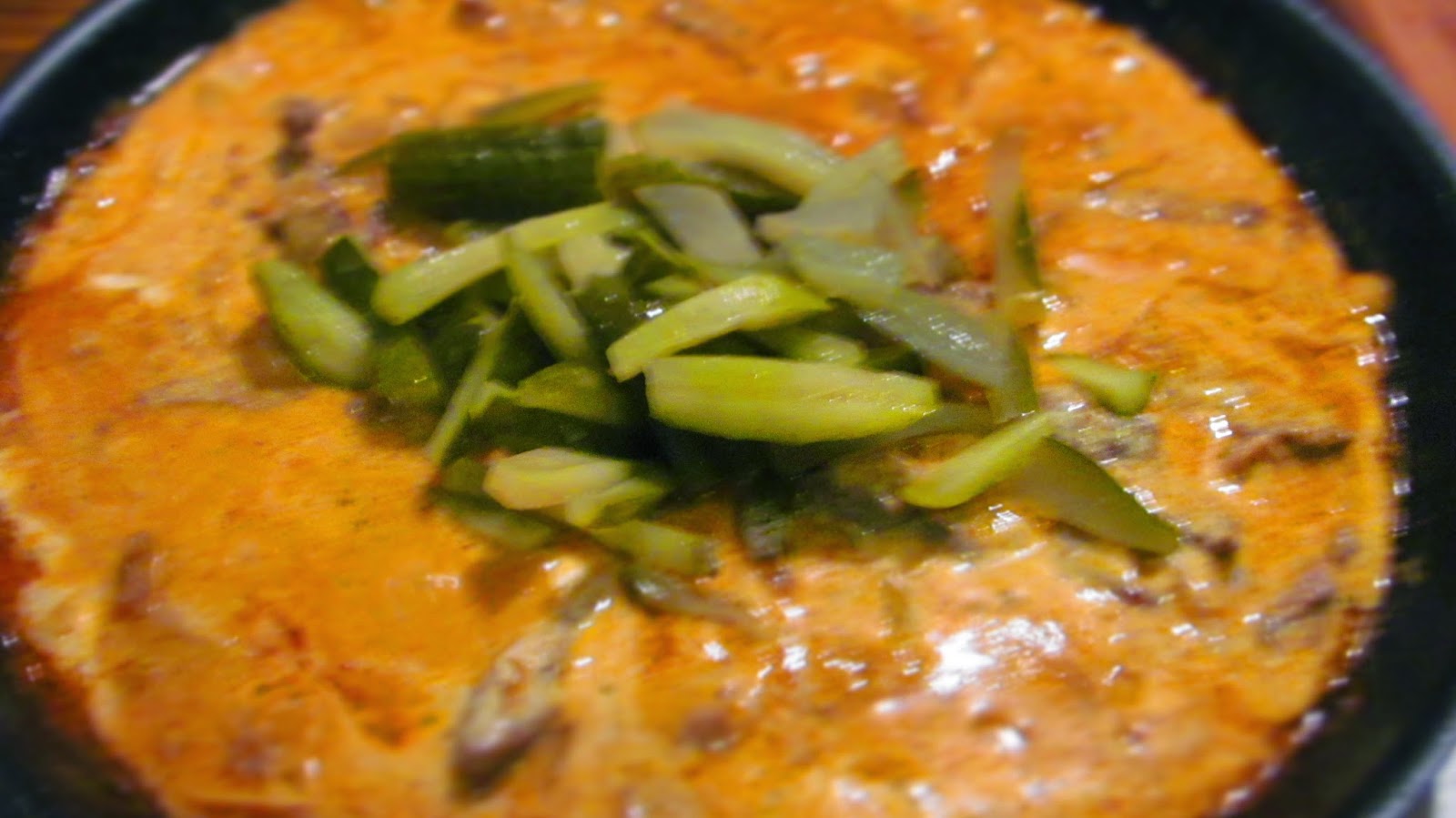 - Нарязвам краставичките на тънки лентички и ги добавям към вкусния вече сос. Оставям ястието на котлона да къкри до готовността на месото. При мен това отне около 15 минути. Пробвам на вкус и добавям сол и черен пипер, само ако е нужно.