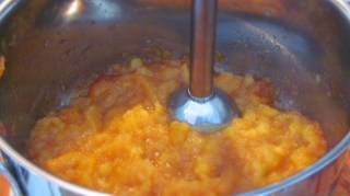 • Ако искам да получа гладко пюре, използвам пасатора. Така не остава нито една бучица, а се получава напълно гладък ябълков мус.