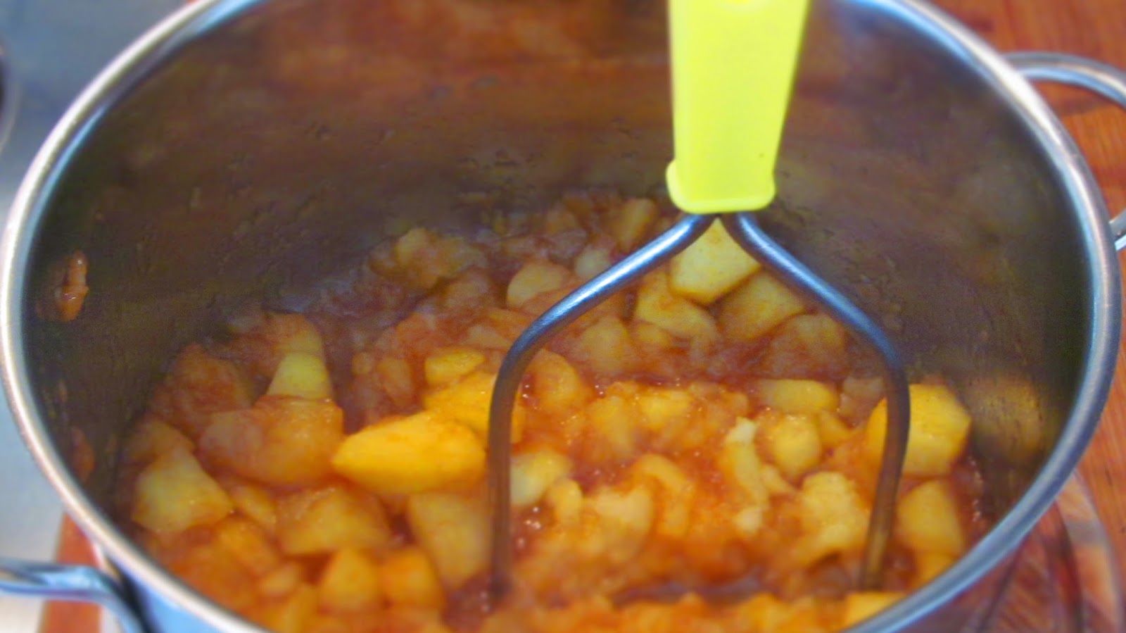 • Ако искам ябълковият мус да бъде едро смлян, използвам само уреда за намачкване на картофи. Така крайния продукт става на пюре, но с бучки. Тези бучки в ябълковото пюре са  въпрос на вкус.