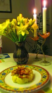 Бързам да опиша вкусовите си впечатления от далечна Дания. Благодарение на Йенс, нашият домакин, успях да опитам една малка част от вкусната и различна датска кухня. Тази „Изгаряща любов“ е традиционно за северната страна ястие, с което е израстнал и нашият домакин. Той казва, че не си спомня точно как неговата майка е приготвяла ястието, но си спомня, че то винаги е било много горещо,много вкусно, никога достатъчно и полято обилно с мазнината от пърженето. Години по-късно Йенс възстановява рецептата на своята майка и сега приготвя „Изгарящата любов“ за своята съпруга и моя приятелка – Галя, но спестява мазнината. Така, че запрягайте ръкави мъже – рецептата влиза в раздела за ястия, приготвени от мъже и не отнема повече от 30 минути! Сигурна съм, че ще успеете да зарадвате Вашите половинки и за момент да се потопите в атмосферата на Дания!
