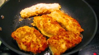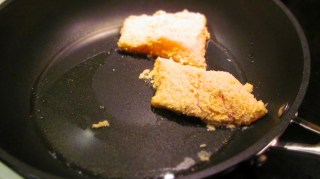 - Загряваме мазнината, която е много малко като количество, в подходящ по размер тиган и пържим рибата на средна мощност на котлона. Ако е на максимална мощност, може много бързо да потъмнее панировката.