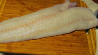- Почистваме филето от треска внимателно от останалите малки кости. Измиваме и подсушаваме с домакинска хартия.