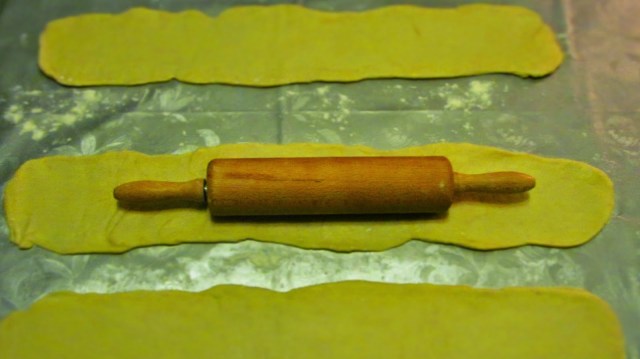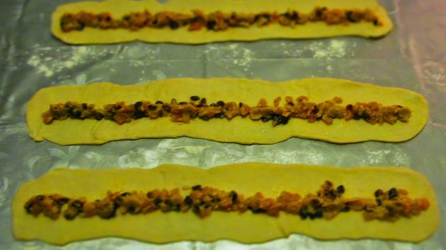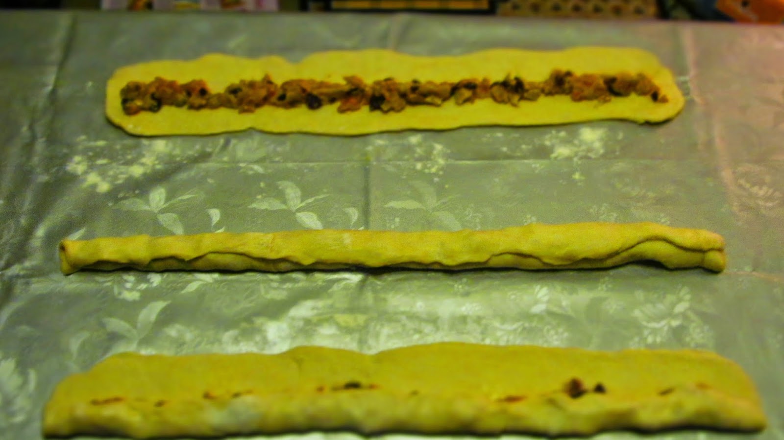 - Разпределих плънката равномерно в средата и по дължина на всяка кора.