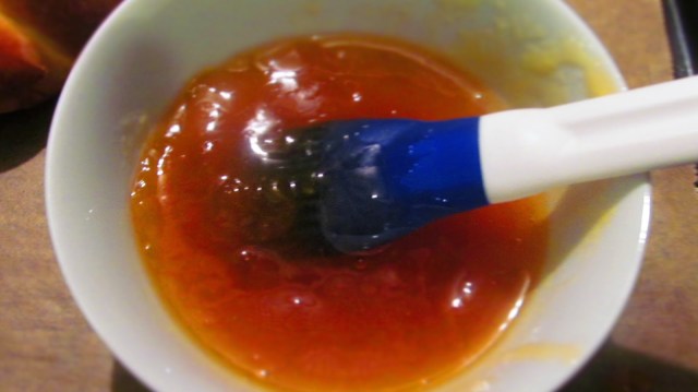 - Изпечената плитка намазах със 100 гр., предварително затоплен, конфитюр от кайсии.