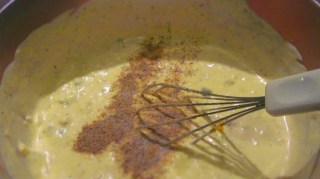 - Добре разбъркания сос Ремуладе, подправям със сол и черен пипер на вкус. Добавям и 1 ч. л. ситно настъргано индийско орехче.