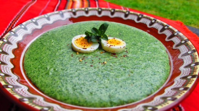 Сервирам копривата с кръгчета варено яйце, стръкче пресен джоджен и поръсена леко с лют пипер. Не добавям сирене и орехи, защото това е нашето желание. Но ако така обичате Вие – добавете. Само внимавайте със солта при добавянето на сирене!