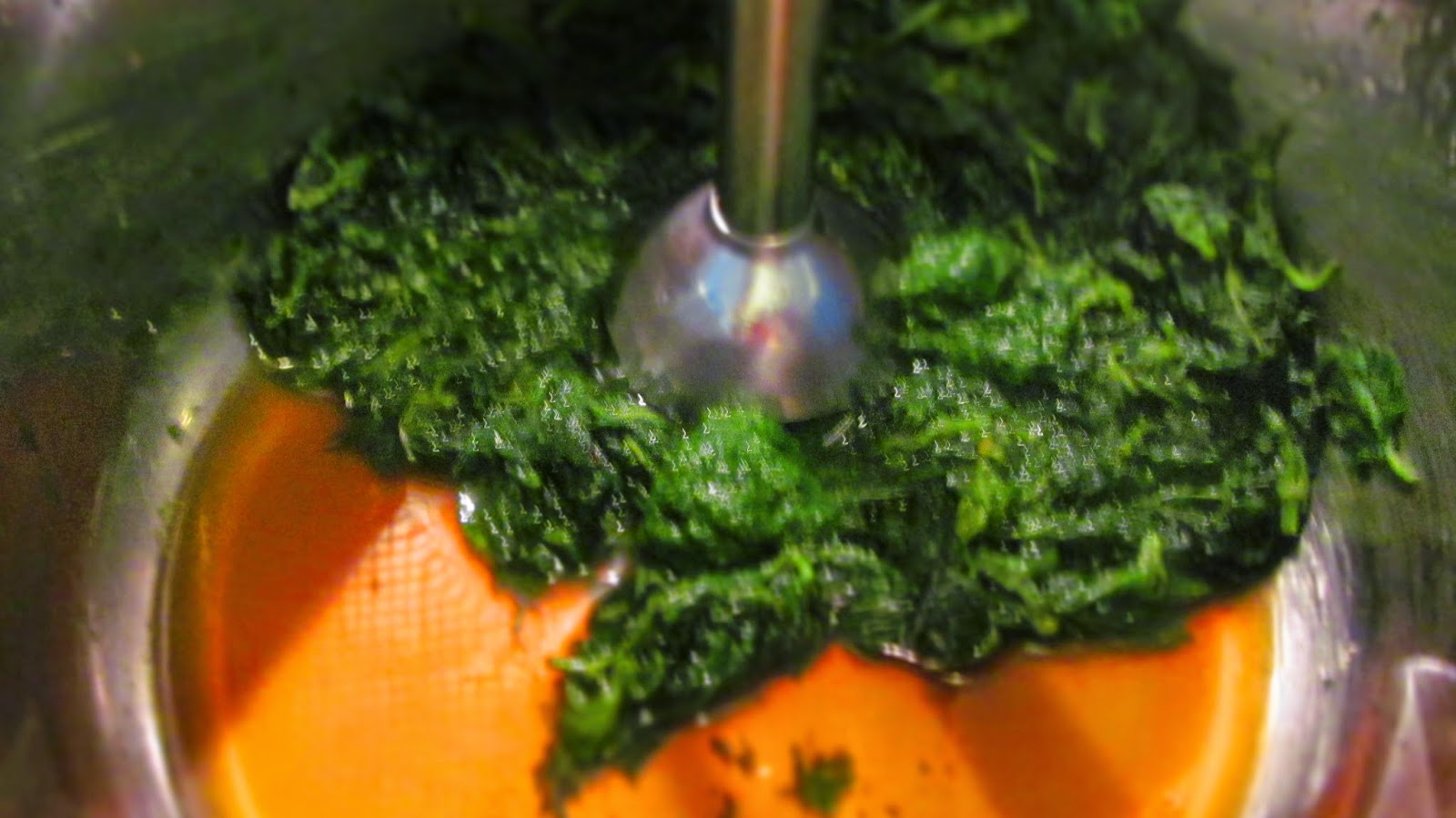 - Слагам копривата в подходяща по размер тенджерка и заливам със зеленчуковия бульон. Включвам котлона на средна мощност и оставям копривата да се вари до омекване.