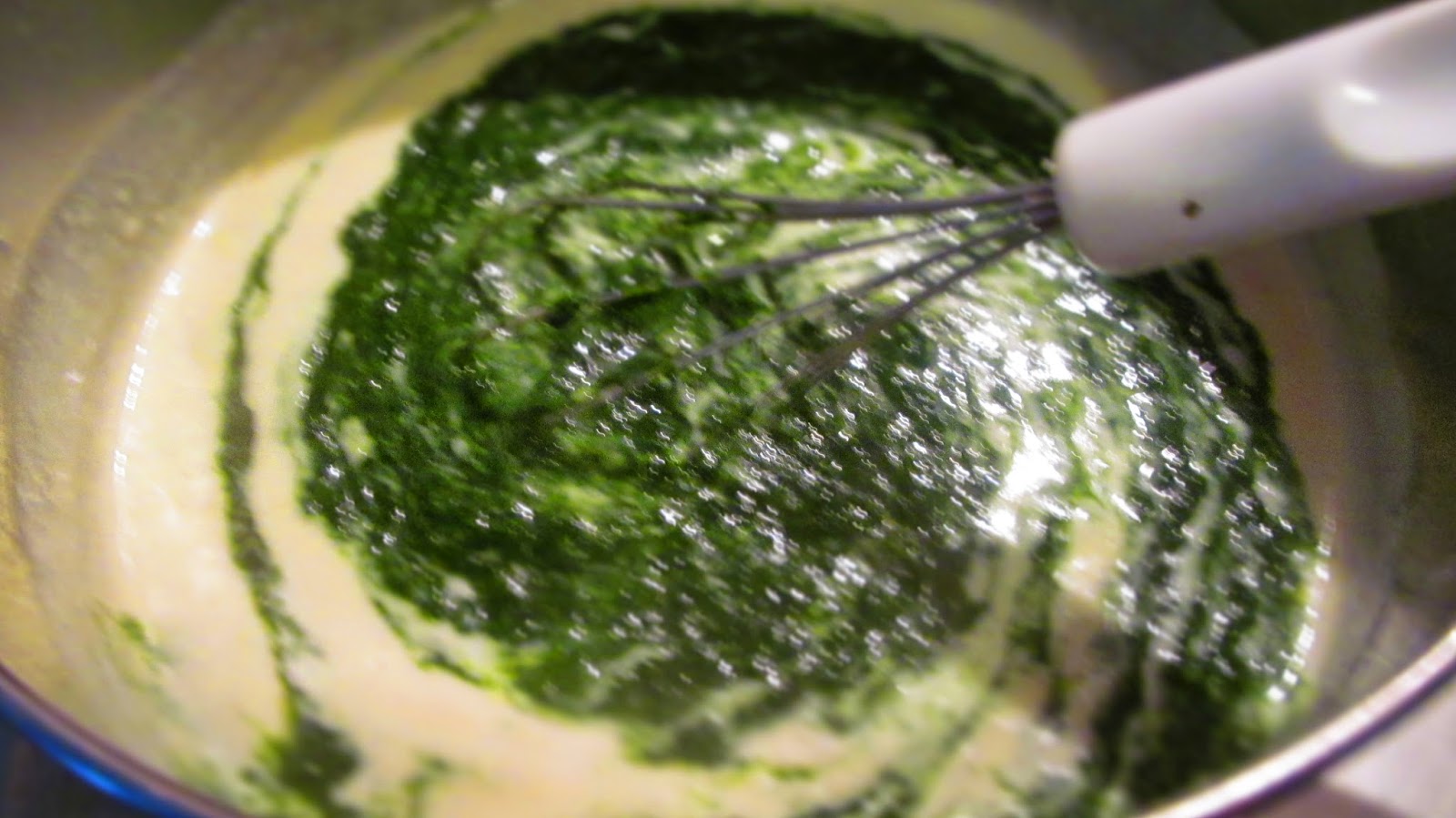 - Заливам златистото брашно с отварата от копривата и добавям прясното мляко и сметаната, като разбъркването е често с тел за разбиване, за да не залепва кашата по дъното на тенджерката. Мощността на котлона е през цялото време средна.