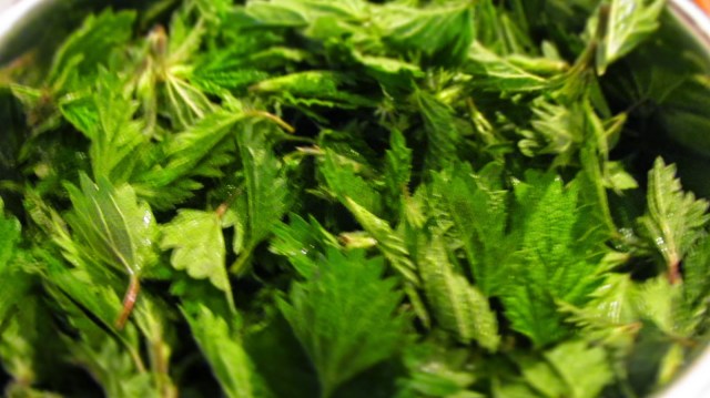 1 пълна, голяма купа с връхчета от млада коприва /нямам кантар и не знам колко грама е/