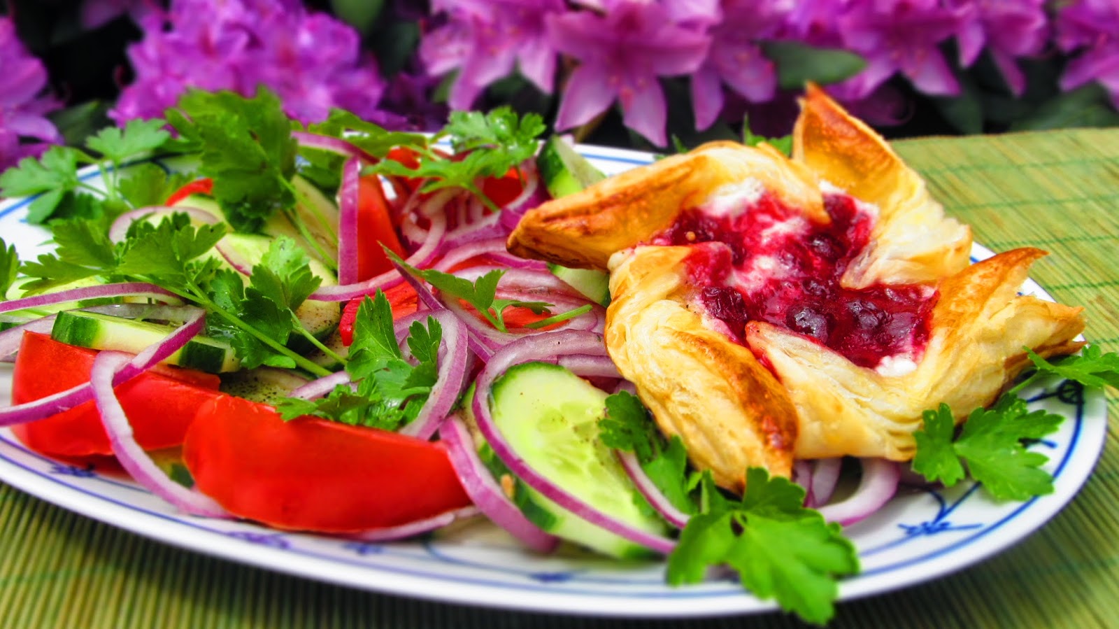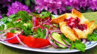 Понякога на човек му се дояжда само салатка! А пък салатката има нужда от препечено хлебче, но който забравя да си купи хляб, а има пакетче бутер тесто в хладилника – намира решение и то е – тези въртележки. Комбинацията от зърнесто прясно сирене и консервирани боровинки дават един невероятен вкус на моите въртележки. Нужно е само да опитате!