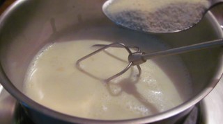 • Добавих гриста към млякото, като непрекъснато разбърквах с тел за разбиване.