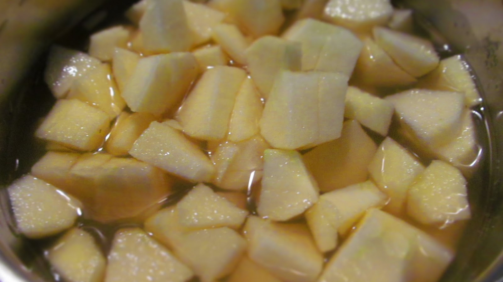 • Обелих и нарязах на дребно 2 ябълки, добавих към тях 2 с. л. захар и 1 ч. чаша сок от ябълки. Сварих за около 10 минути на котлона – на средна мощност и ето…компот от ябълки.