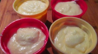 • Изсипах готовия крем в 4 формички за пудинг с вместимост 125 мл.