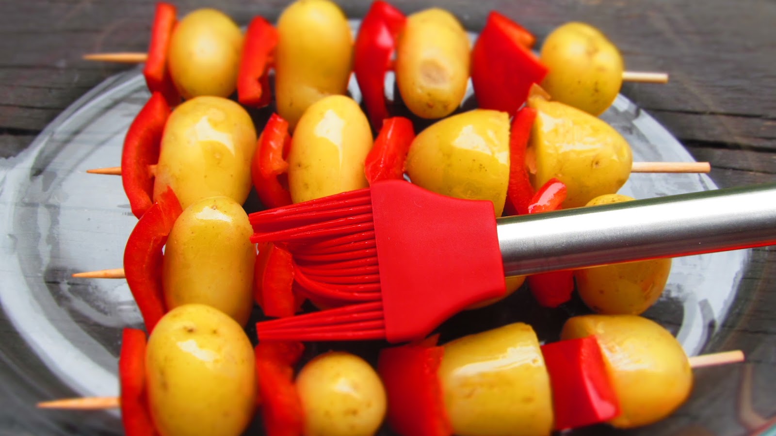 • Изпичането на самите шишчета отнема кратко време, защото все пак картофките са предварително сварени.
