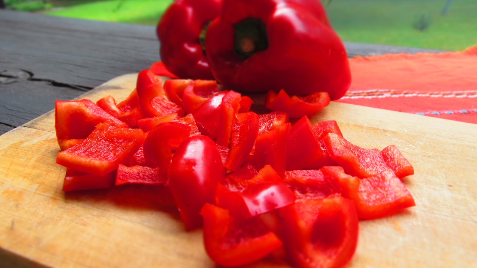 • Чушката почистих от дръжката и семената. Нарязах на парченца с размер, удобен за хапване на един път.