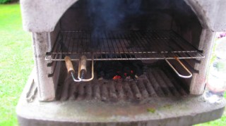 • Докато чакам да поомекнат картофките, запалваме скарата по описвания вече от мен начин в рецептата за Шишчета от свинско месо и изпичаме предвиденото месо. Картофките слагаме след месото на скарата. Така те поемат също от аромата на месото.
