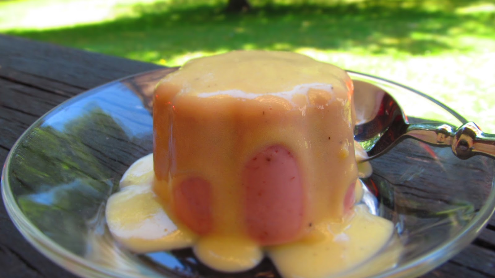 Сервирам ягодовия пудинг полят с ванилов сос!