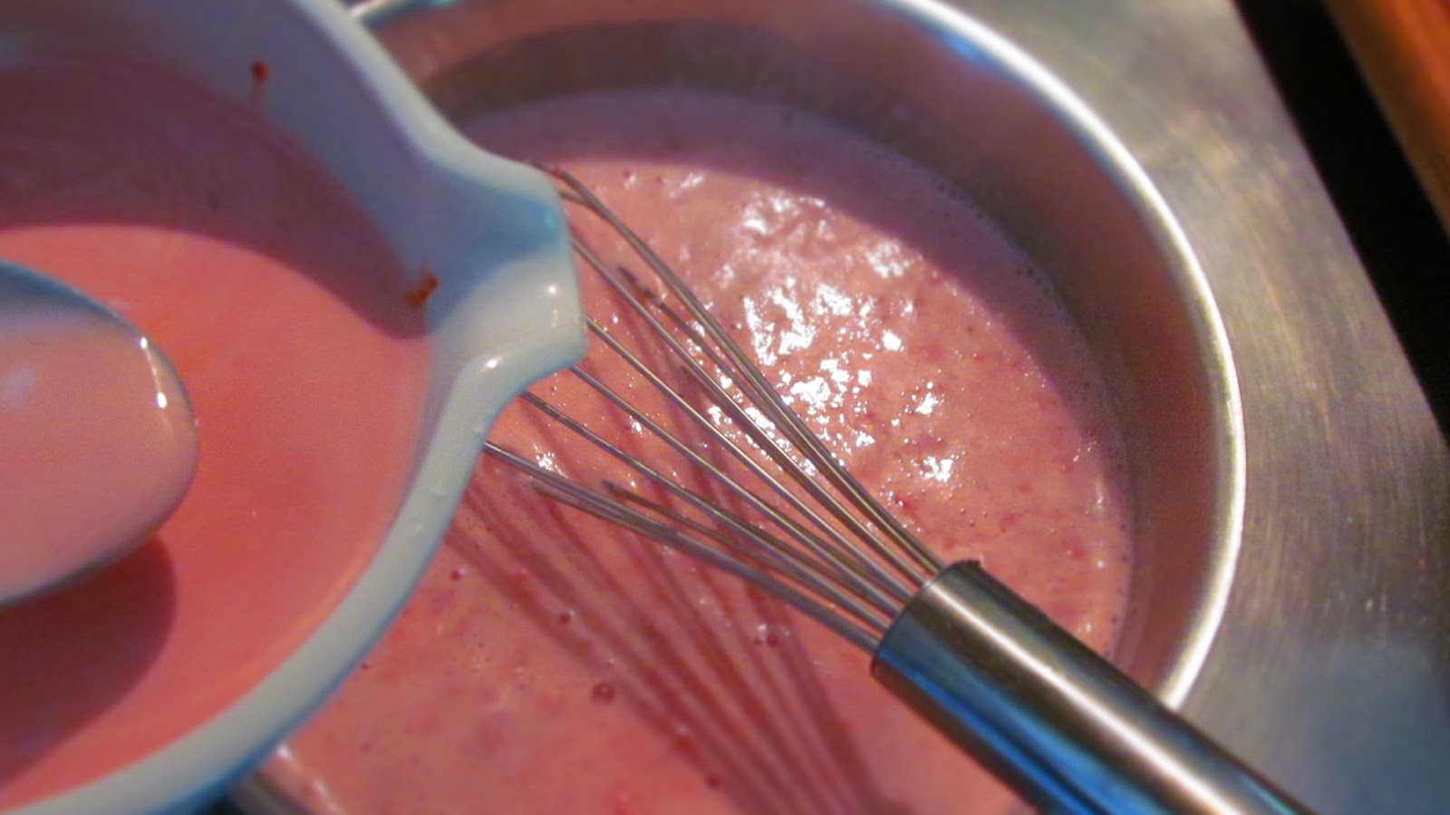 - Добавям към пюрираните ягоди сметаната, останалото прясно мляко, захар и ваниловата захар. Количеството на продуктите трябва да е общо около 500 мл. Ако е нужно – добавяте още прясно мляко.