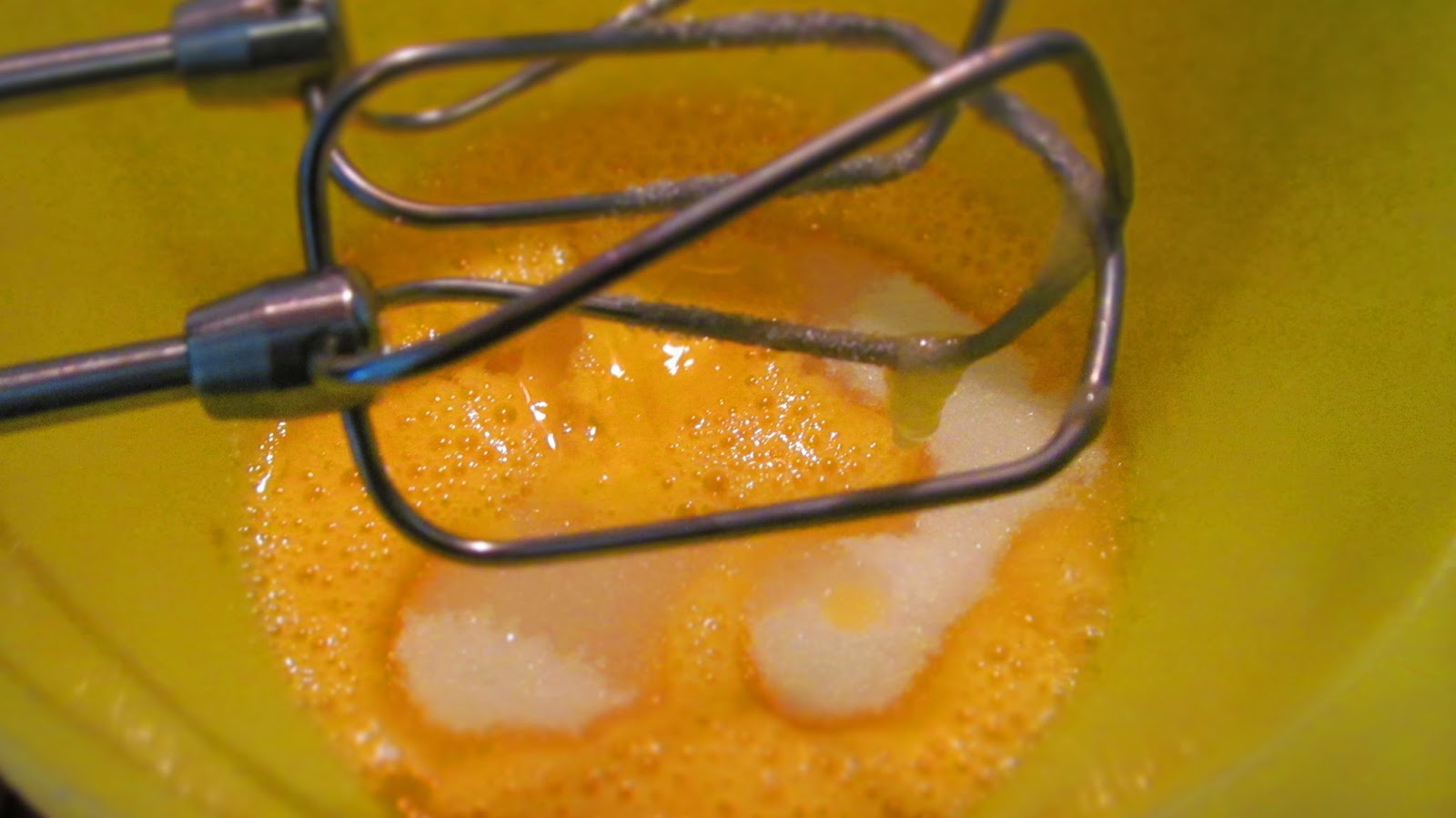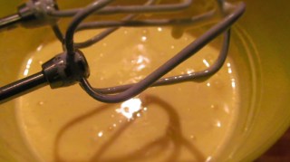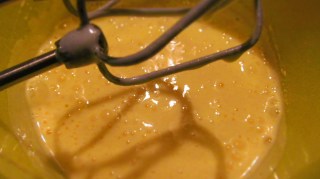 • С помощта на миксер разбивам яйцата, 120 гр. захар, ваниловата захар и 2 с. л. студена вода. Разбиването трае между 5 и 10 минути, или докато се получи пухкав крем, чийто цвят от жълт става бледо – жълт или почти бял.