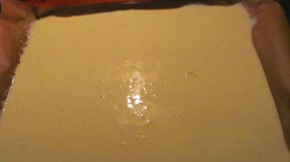 • Обърнах готовия блат върху кърпата и много бавно и внимателно отлепих хартията, върху която се печеше.