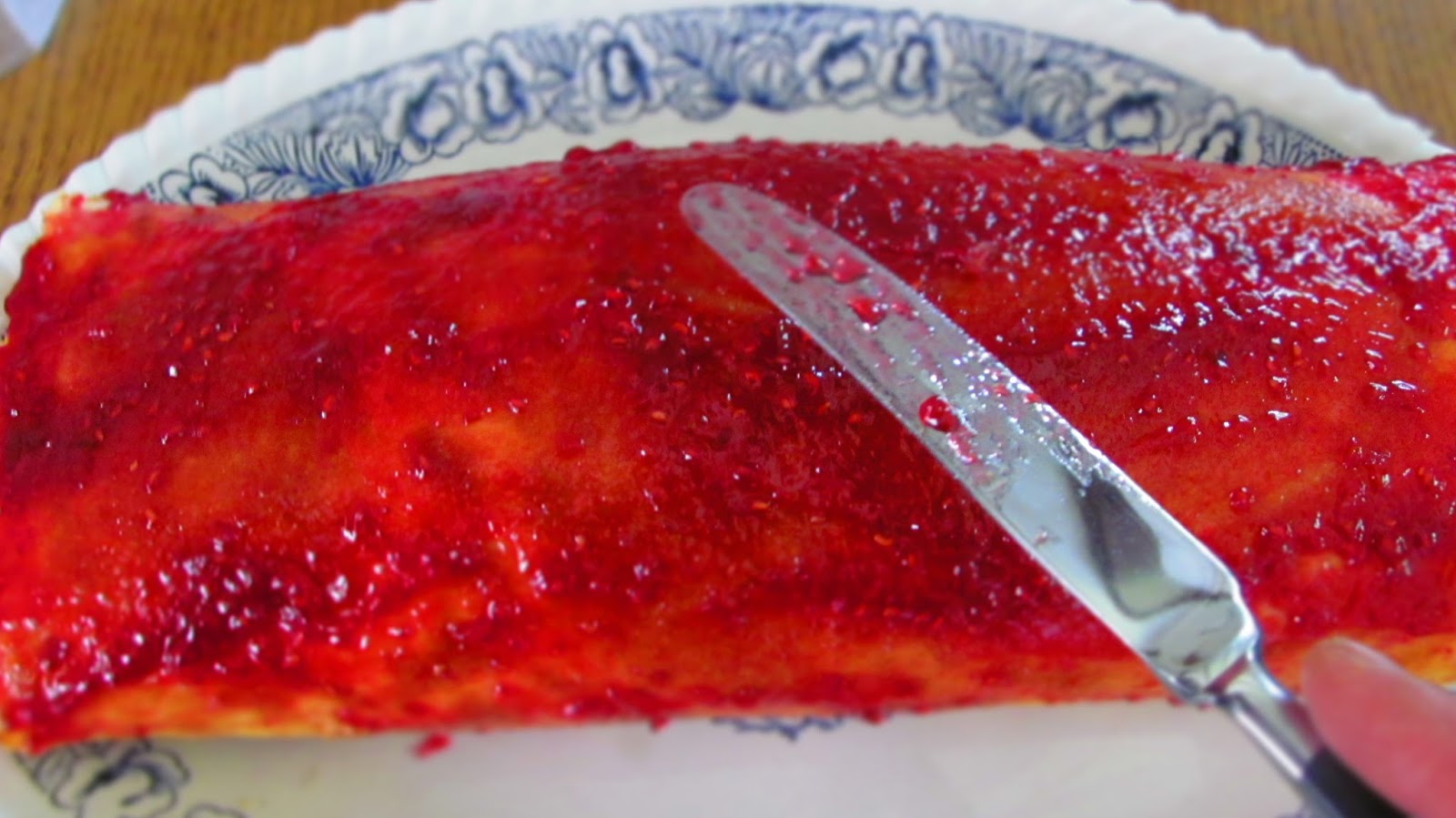 • Готовото руло намазах с малиновото желе /конфитюр/.