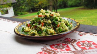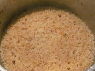 - Булгурът заливам със зеленчуковия бульон и сварявам за около 15 минути на ниска мощност на котлона. Изцеждам от течността и оставям да се охлади.