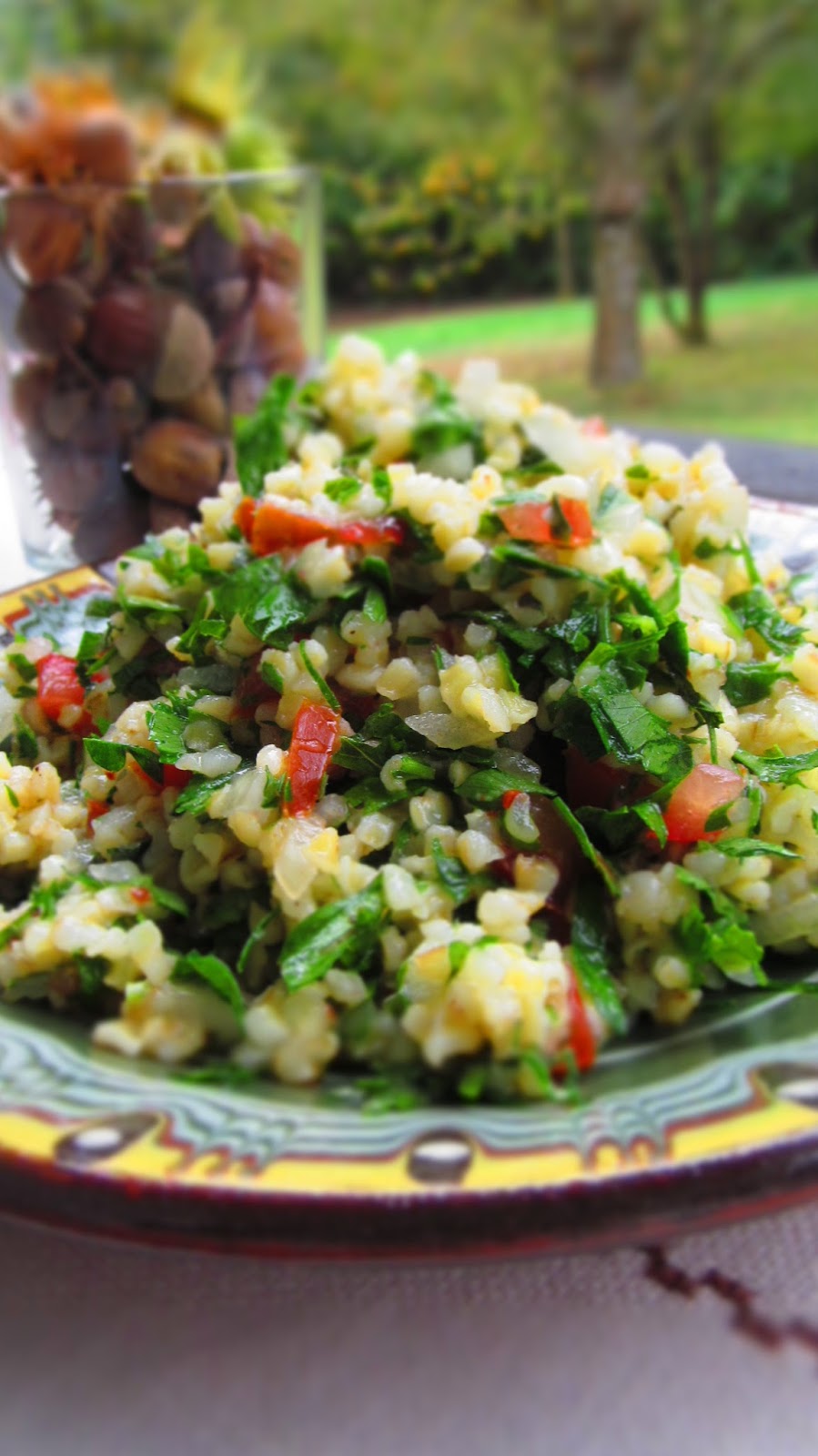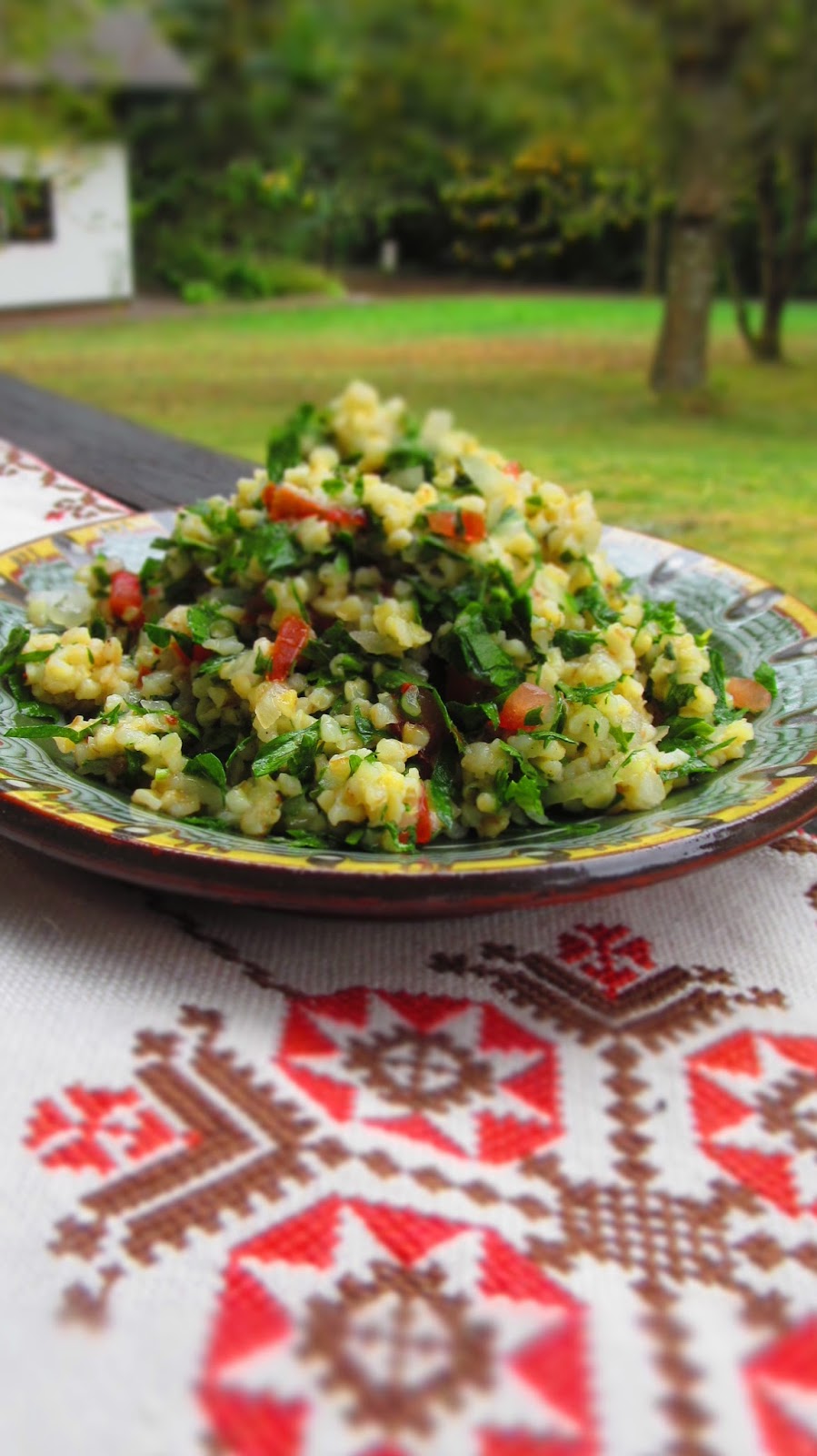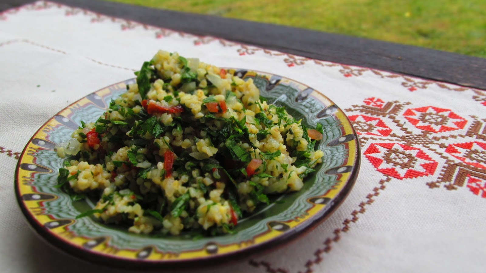 - Булгурът заливам със зеленчуковия бульон и сварявам за около 15 минути на ниска мощност на котлона. Изцеждам от течността и оставям да се охлади.