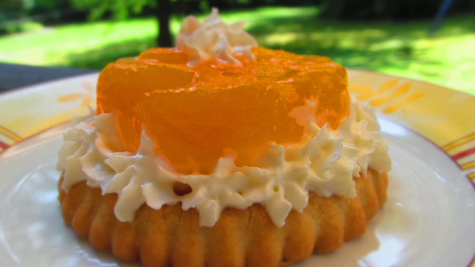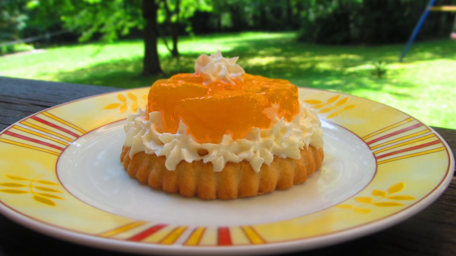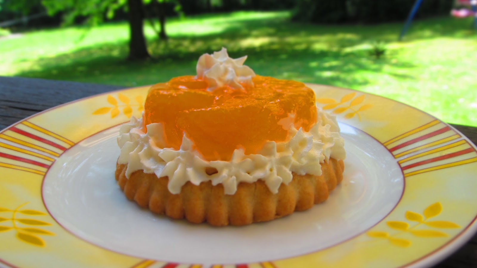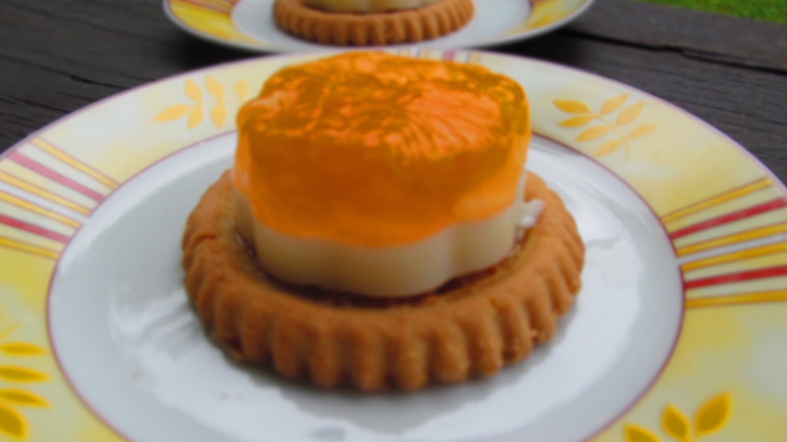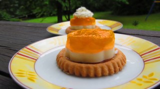 И за да продължа темата за пудингите, днес приготвих тези вкусни плодови тортички. Това в същност си е пудинг с мандарини, но сервиран върху тарталетка или просто върху една бисквита „Слънце“ на фирма „Победа“. Е …това не е реклама на тези бисквити, това просто е един спомен за вксът им, или как спокойно заместват тези готови тарталетки, които могат да се купят в немските вериги магазини.