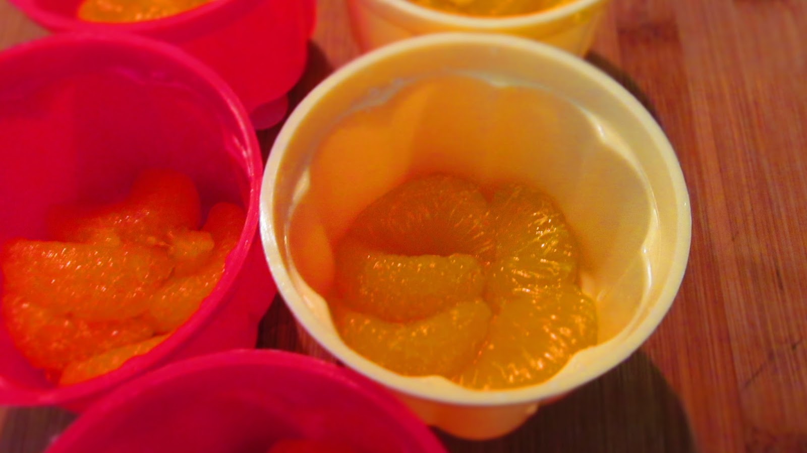 - Подреждам изцедените мандарини на дъното на формичките.