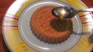 - В чинийкита за сервиране сложих бисквитката /тарталетката/