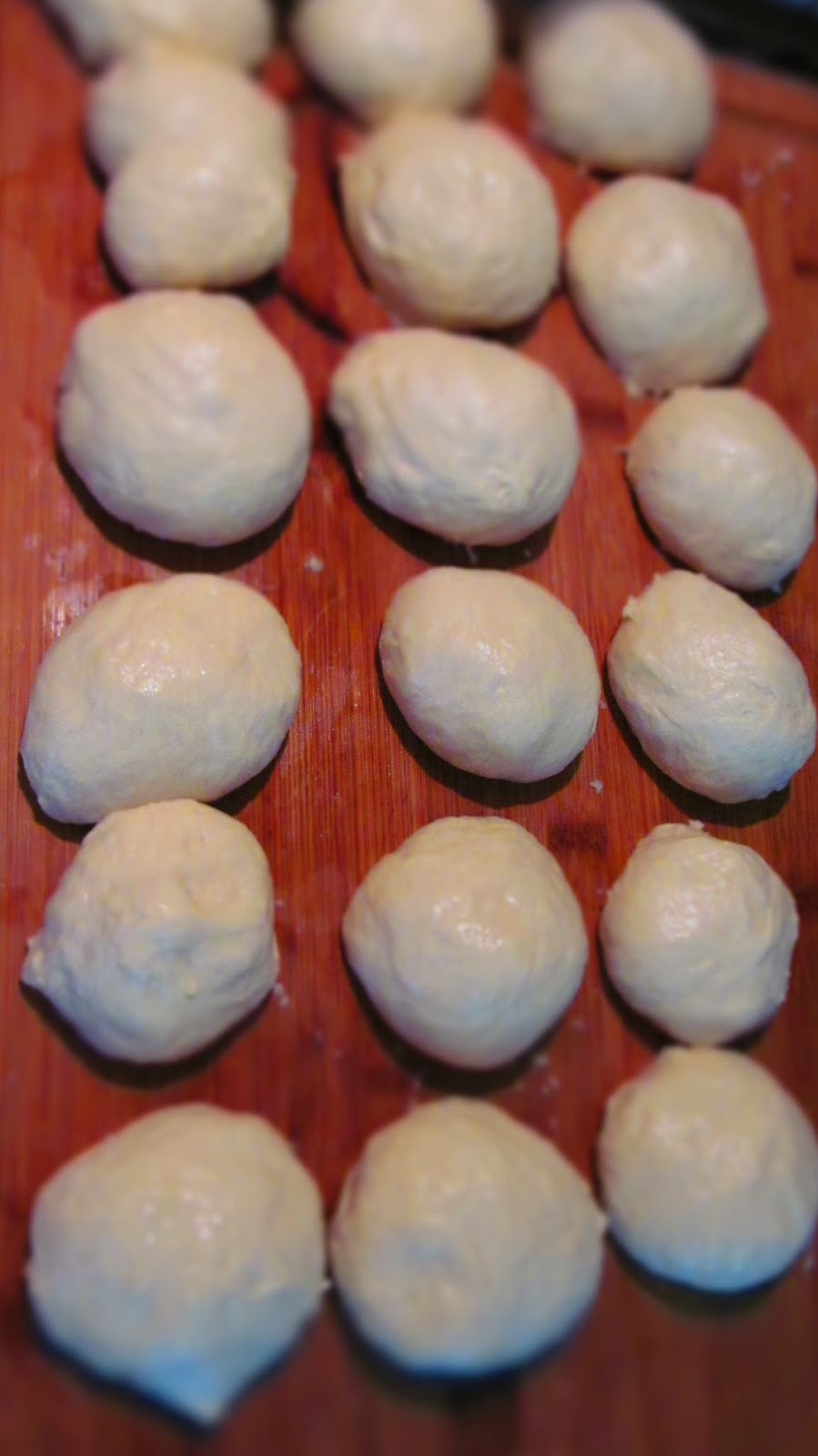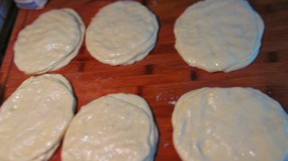 - Всяка топка разточвам на питка с размер на чинийка за кафе и намазвам обилно с мазнина. Слепвам тези питки по 3.