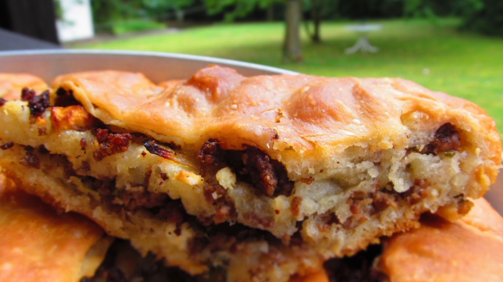 Илинден и рожден ден на Динко. Е…не сме от хората, които спазват много всички традиции, но пък на връщане от отпуска прочетох в едно вестниче, че на този ден се приготвя баница с месо. И, за да не останем по-назад, на трапезата ни имаше баница с кайма и мая. Да, странно е, че е хем баница, хем с мая. Но…все пак в някои райони на България почива с мая ги наричат баница.