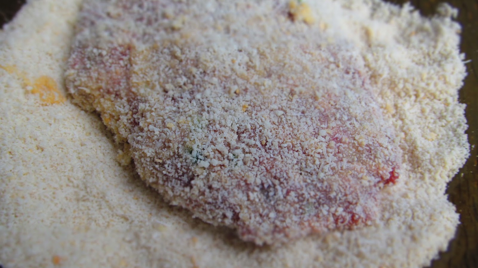 - След това овалвам в галета, смесена с настъргания пармезан.