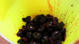 - Почистих измитите череши от костилките, като оставих 12 бр. от тях за декорация.