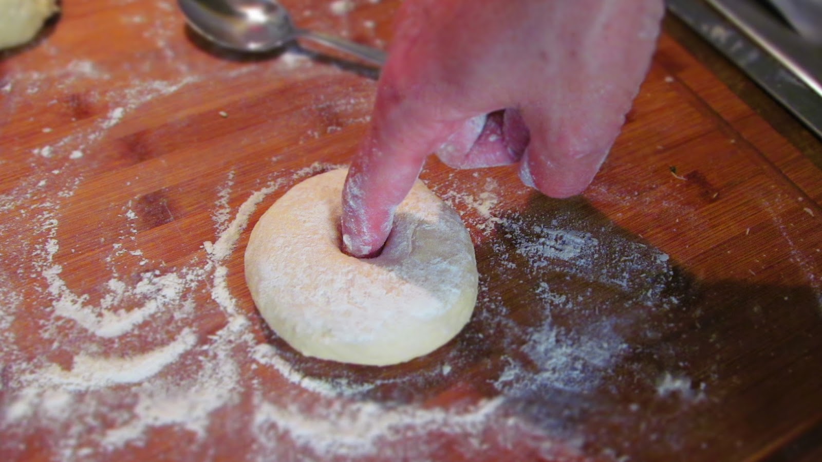 • После поставих показалец в тази дупка и с въртене на питката около пръста,  оформих дупката в средата.