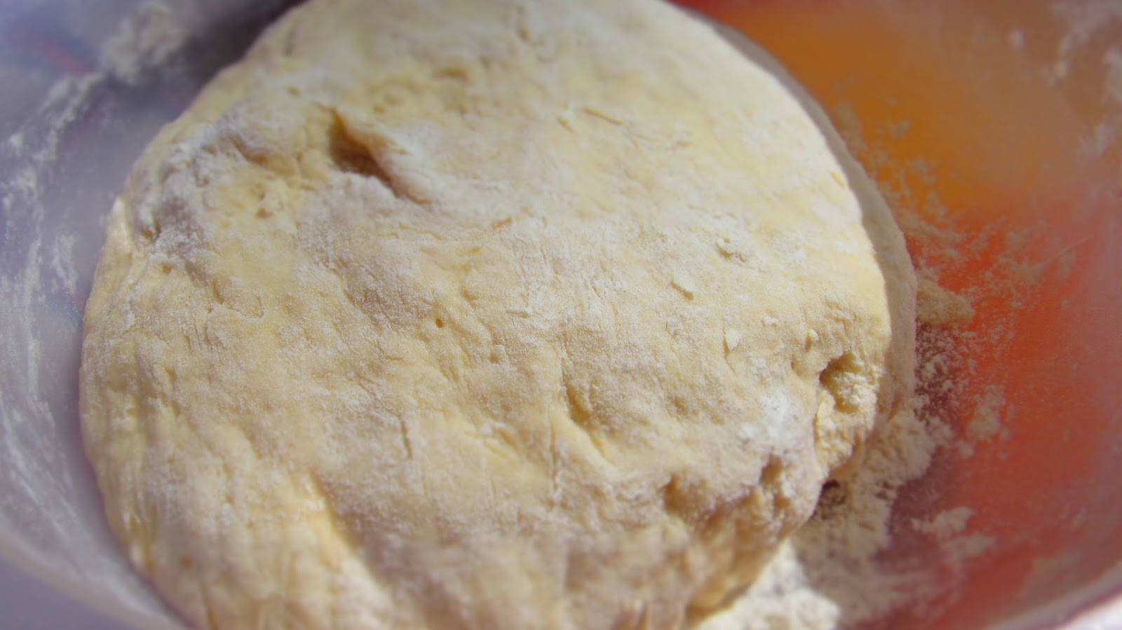 • На мен не ми достигна и брашното, така че за това количество вода се наложи да добавям още брашно. Съотношението вода брашно зависи донякъде и от типа на използваното брашно. Важното е да се получи меко тесто, което оформих на топка и оставих за 30 минути, покрито с кърпа да втасва.