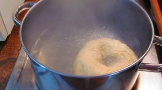 • Тук промених рецептата, която е за попарване на бейгълите в гореща подсладена с 2 с. л. захар вода. Аз просто не го правя, защото тези пухкави и добре втасали питки с дупка, са си много по-вкусни и  без попарването, което е за 30 секунди.