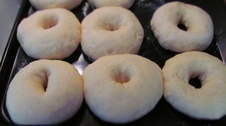 • Покрих бейгълите с кърпа и оставих за 20 минути отново да втасат.