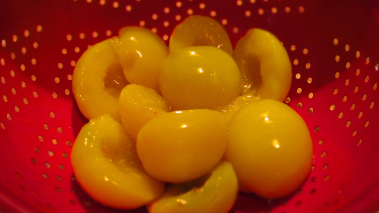 - Прецеждам прасковите от сока. Трябва да са възможно най-добре прецедени, за да не напоят много кезекухена.