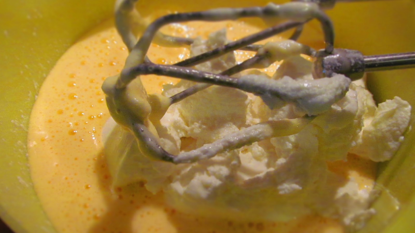 - За крема смесвам в купа яйцата и захарта и разбивам до пяна.
