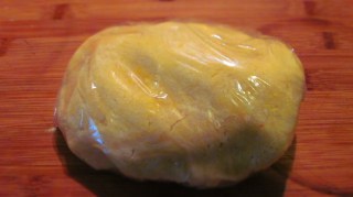 - Започвам месенето с пръсти, докато маслото и брашното добре се омесят и тогава с ръце. Месенето продължава докато се получи гладко маслено тесто. Увивам топката в стреч фолио и оставям на студено в хладилника за около 30 минути.