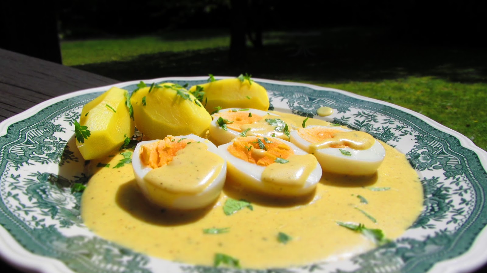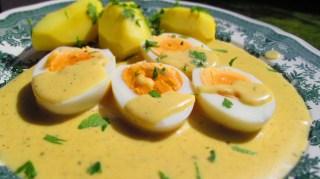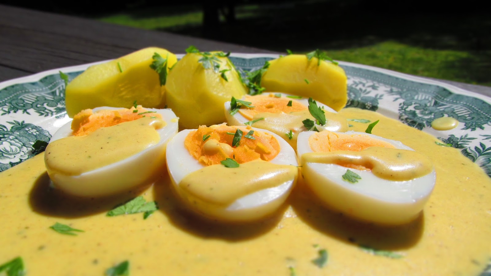 Сигурна съм, че много от Вас обичат варените яйца и честичко ги сервират на масата като мезе. Ето един вкусен вариант за сервиране на варените яйца. Един вариант, който не отнема много време за приготвяне, а пък в същото време е нещо различно и много вкусно. Тези яйца със сос с горчица може да се сервират като предястие, като основно ястие и като мезе. Ако се сервират като основно, аз им добавям и сварени картофи.