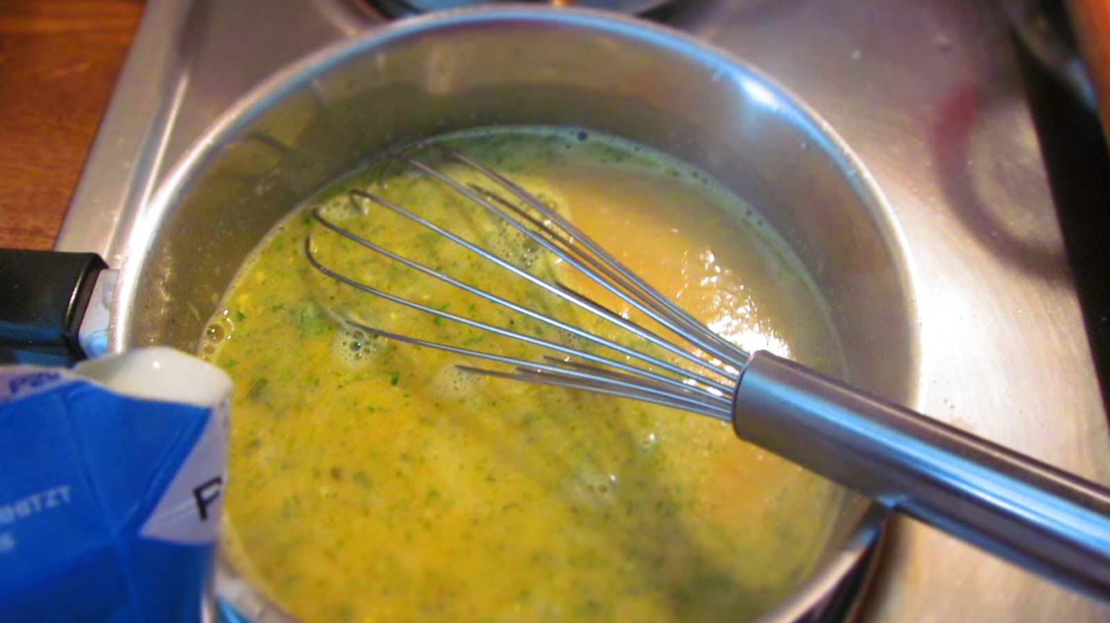 - Добавям сметаната и разбъркването продължава с тел за разбиване.