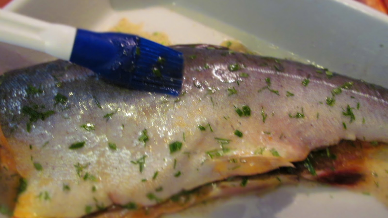 - С помощта на четчица, намазвам обилно рибата с марината.