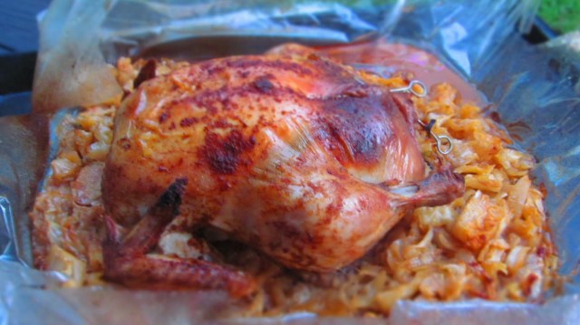 - После слагам върху зелето пилето, като внимавам иглите да не наранят целостта на плика.